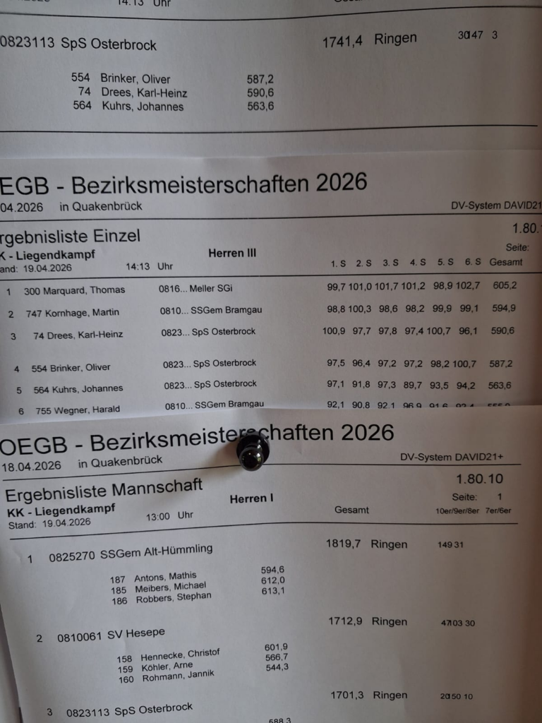In der Disziplin KK-Liegendkampf (1.80) wurde Thomas Marquard, in der Klasse Herren III, Bezirksmeister mit 605,2 Ringen